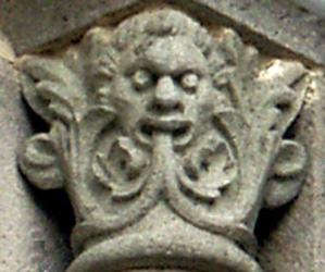 Una cabeza diabólica y una cabeza animal para alegar al mal y, al mismo tiempo que nos da la esperanza de una nueva vida. Esto se muestra en las hojas nuevas que vienen de la boca. Iglesia de Nuestra Señora la Grande en Poitiers, Francia Siglo XI-XII |